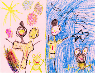 | The princess and the frog, night and day. That's not blood on her shirt. |